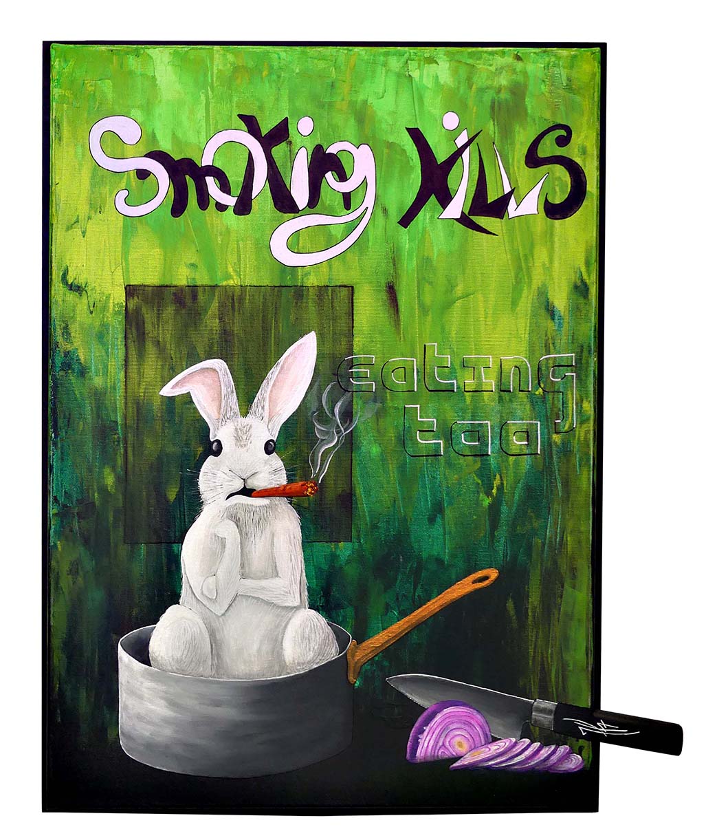 Le lapin peut bien fumer à volonté toutes ses carottes sans être inquiété par ce genre de slogan puisque lui est destiné à passer à la casserole !